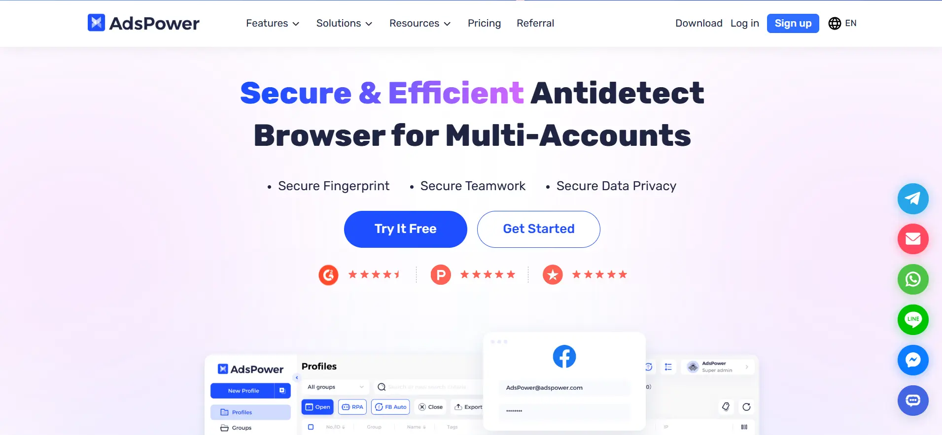 AdsPower — это браузер против обнаружения, предназначенный в первую очередь для цифрового маркетинга, электронной коммерции, партнерских кампаний, управления криптовалютой и работы в социальных сетях. Он позволяет пользователям запускать несколько аккаунтов, при этом каждый профиль браузера оставался изолированным с уникальными отпечатками пальцев и конфигурациями прокси.