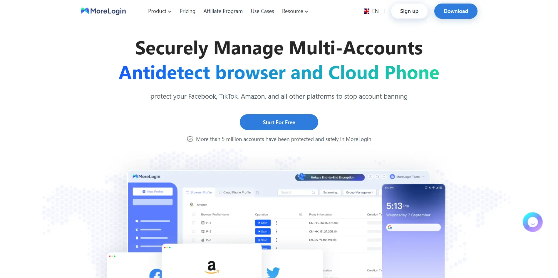 MoreLogin — это антидетективный браузер, ориентированный на управление несколькими аккаунтами, помогающий пользователям избежать обнаружения и блокировки аккаунтов. Он предлагает чистый облачный интерфейс с отдельными профилями браузера, поддержкой прокси и инструментами командной работы, что делает его подходящим для малого и среднего бизнеса, агентств и проектных операций.