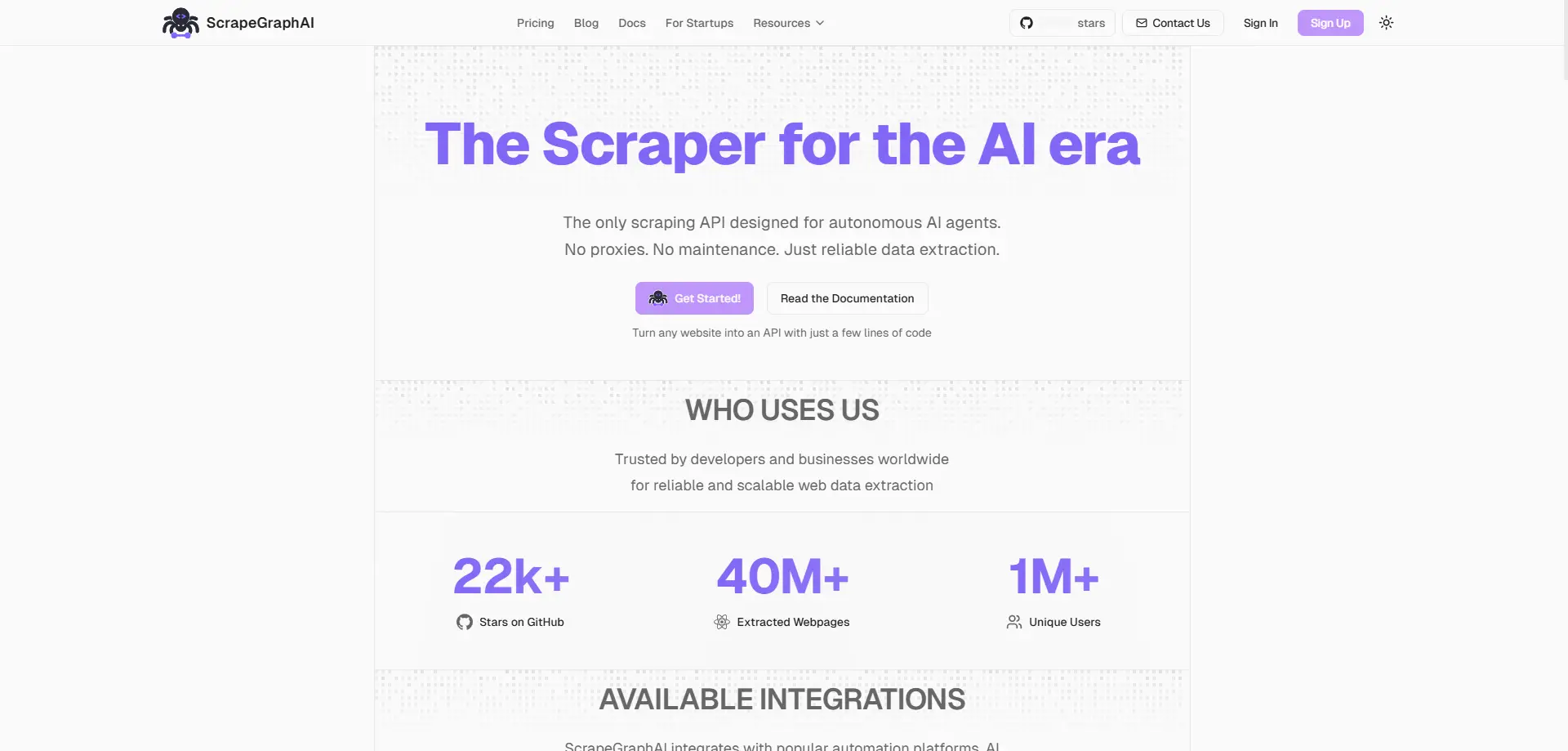 ScrapeGraphAI выделяется тем, что сосредоточен на извлечении с помощью ИИ с помощью простых подсказок. Сайт утверждает, что пользователи могут извлекать структурированные данные с сайтов без использования селекторов, прокси или постоянного обслуживания. Её инструменты также поддерживают многостраничное сканирование, рендеринг на JavaScript и извлечение на естественном языке. Цены начинаются с бесплатного тарифа, затем платные уровни для крупных проектов. Это делает ScrapeGraphAI одной из более современных альтернатив firecrawl для бизнеса, желающего автоматизации без самостоятельного создания каждого шага. Например, команда продаж может использовать его для извлечения названий компаний, электронной почты или информации о продуктах с нескольких страниц с меньшей ручной настройкой.