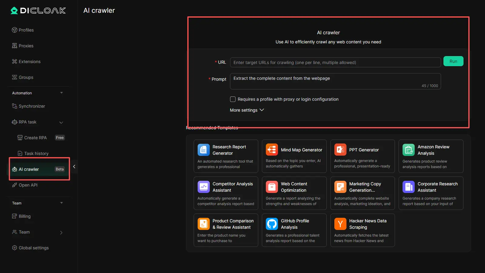 Для повторной работы DICloak включает такие инструменты, как Multi-Window Synchronizer, AI Crawler и встроенные функции автоматизации. Это помогает сократить ручные шаги и повысить эффективность при выполнении нескольких задач цифрового арбитража.