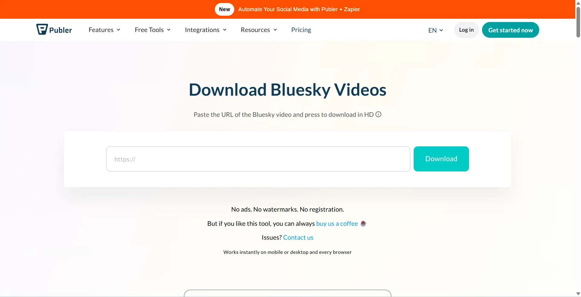 Publer предлагает бесплатный онлайн-загрузчик видео Bluesky в рамках своего широкого набора инструментов для социальных сетей. Его главная привлекательность — простота использования: нет регистрации, нет водяных знаков, а скачивание можно напрямую с публичной ссылки Bluesky. В статье этот инструмент можно представить как более отшлифованный веб-вариант для пользователей, предпочитающих более чистый интерфейс и не желающие устанавливать программное обеспечение.