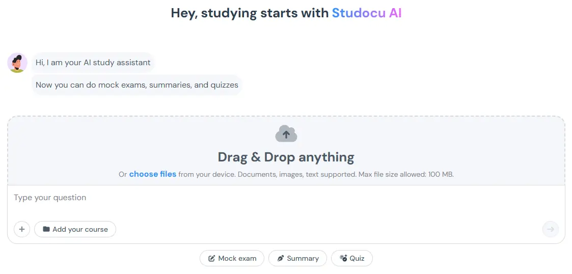 Попробуйте так: сфотографируйте свои рукописные заметки или загрузите слайды лекций в Studocu AI.