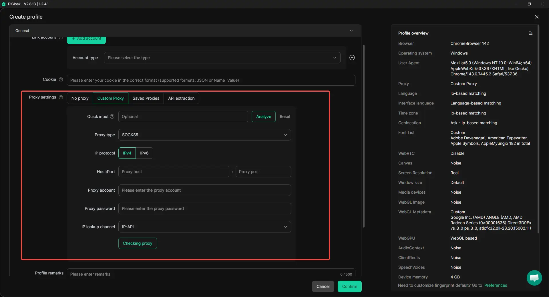 Проблемы с верификацией часто усугубляются, когда слишком много аккаунтов используют одну и ту же сетевую среду. Настройка прокси на уровне профиля позволяет назначать отдельное прокси каждому аккаунту, что помогает поддерживать более организованные IP-сигналы. Для команд, работающих с социальными сетями, электронной коммерцией или партнерскими аккаунтами, это создаёт более стабильную структуру для долгосрочной работы с аккаунтами.