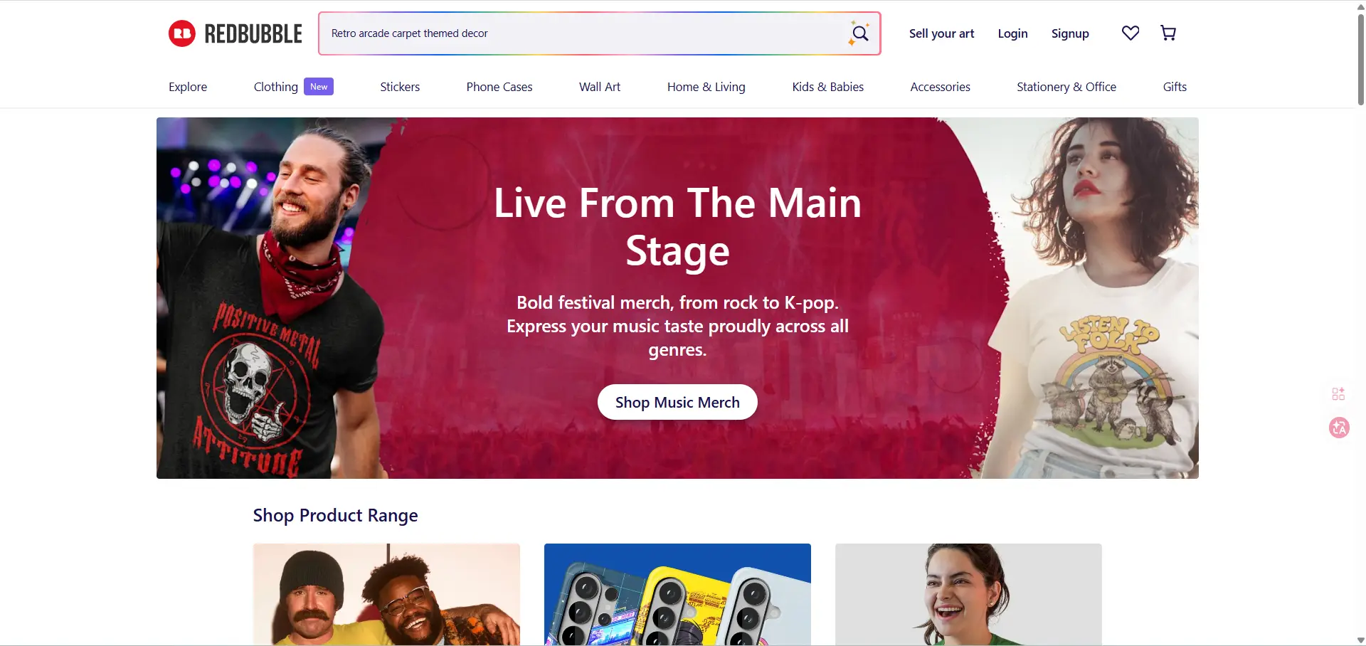 Redbubble предлагает широкий ассортимент товаров, что объясняет, почему сайт вызывает такой большой интерес покупателей. На официальном сайте Redbubble сообщает, что дизайны могут появиться более чем на 70 продуктах, включая футболки, наклейки, чехлы для телефонов, настенные изображения и домашний декор. Проще говоря, один рисунок может отображаться в виде наклейки на ноутбук, оформленной в рамке или даже подушки — в зависимости от того, что художник подготовил. На сайте также есть официально лицензированный фан-арт в некоторых категориях, что делает маркетплейс более надёжным для некоторых покупателей.
