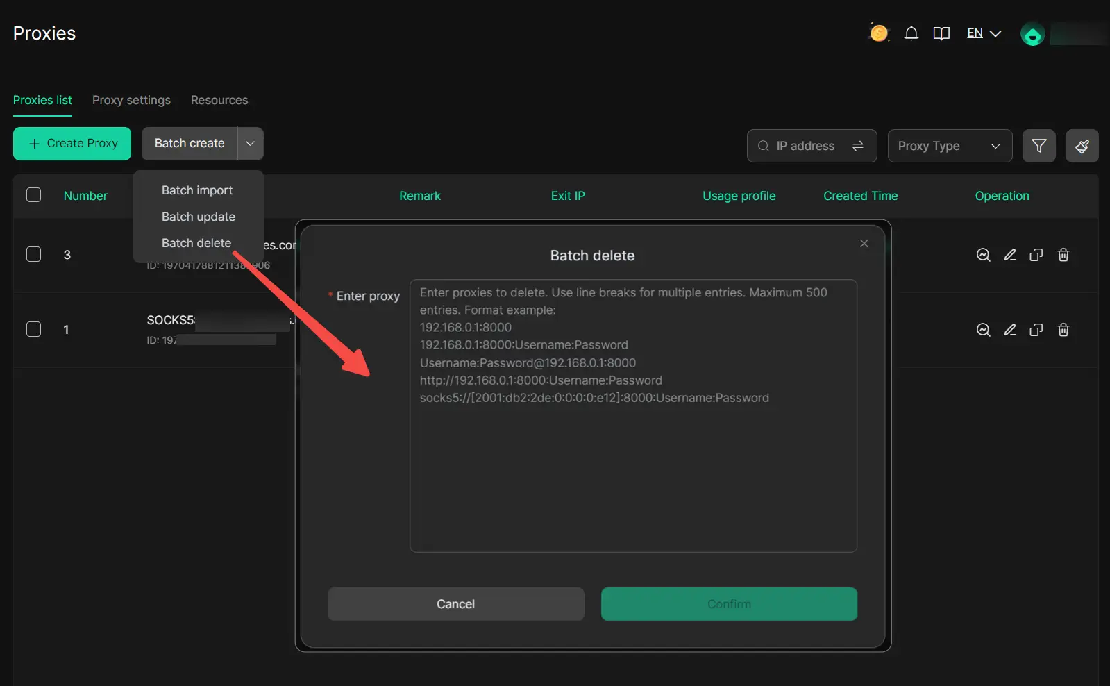 Теперь пользователи могут быстро удалить несколько просроченных прокси, импортируя список от своего провайдера в инструмент пакетного удаления DICloak, что упростит очистку прокси.