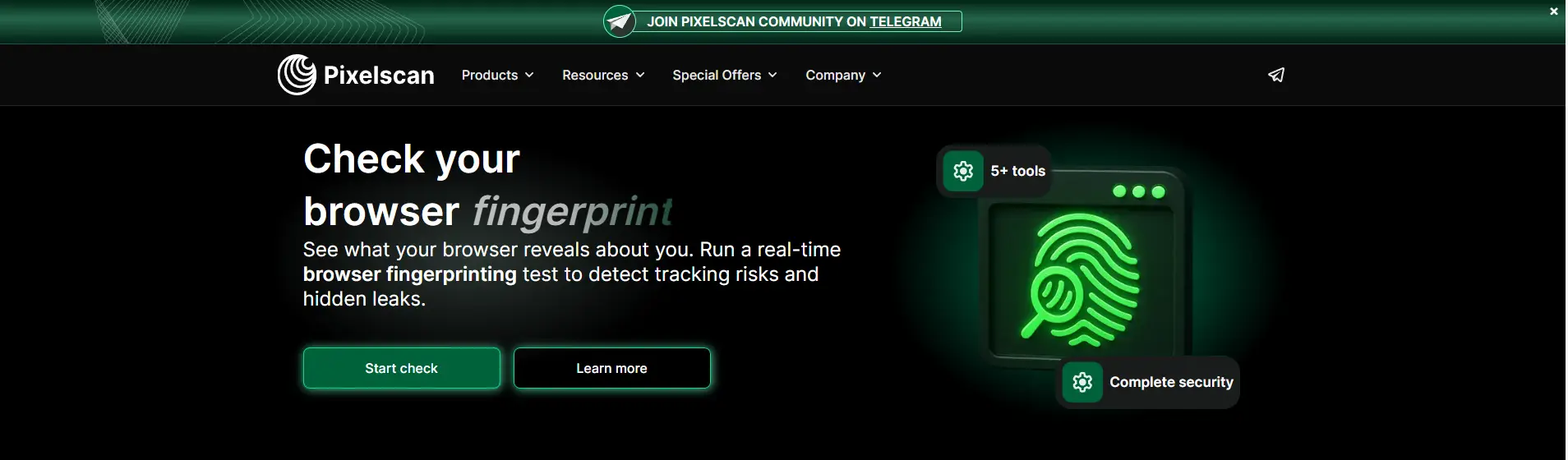 Запустите бесплатное сканирование на Pixelscan прямо сейчас — без входа, без настройки. Проверьте отпечаток браузера, настройки местоположения и возможные утечки данных всего за несколько секунд. Возьмите под контроль свою онлайн-приватность уже сегодня.